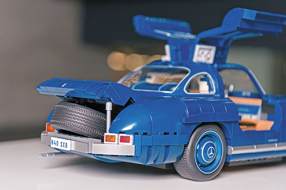 這款300SL模型車長360mm、高100mm,配備金屬側鏡和軚盤,引擎蓋、行李箱蓋及鷗翼車門均可打開,同時提供可替換的輪圈、前大燈、座椅及排氣管等零件。行李箱內附設後備胎,進一步增添真實感。隨車附送專屬1:64平治300 SL 合金模型車仔及透明展示盒。全套模型售價為$1,940,顧客可於平治九龍品牌中心(紅磡寶來街50號)或平治香港網店購買。