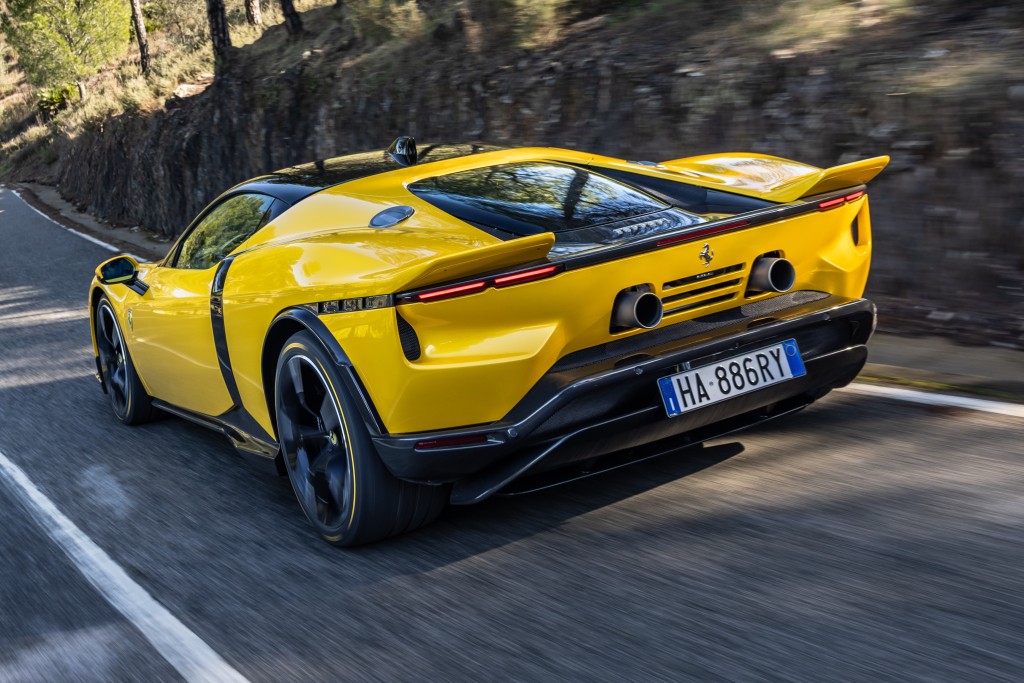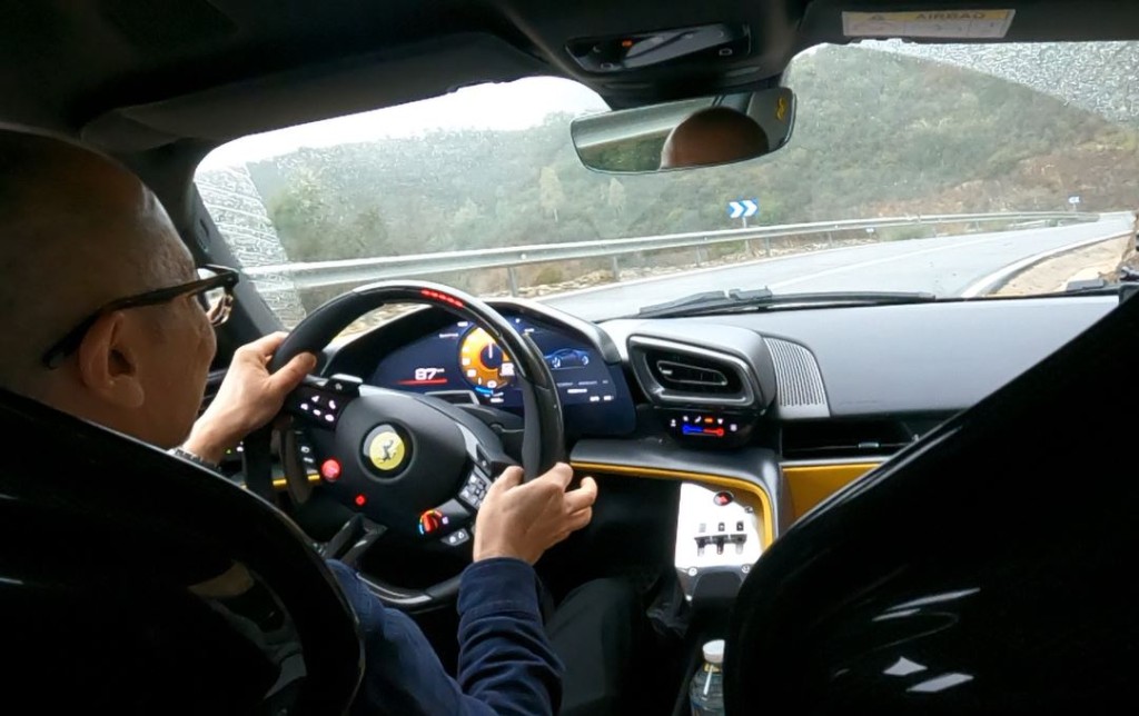 天雨路滑本來不是試駕1,050ps馬力的理想場景,何況是穿越山路窄彎?受惠全新Ferrari Integrated Vehicle Estimator(FIVE)系統,結合了6D六方位感應器及一系列先進循跡控制和動力分配系統、四驅(前軸左右馬達獨立發力),以及新一代ABS Evo線控制動系統,車子擁有驚異抓地力,改用更激進Sport或Race模式力量明顯更狂,馳騁窄彎路轉向表現依然銳利、穩健和安全。猛力出彎車尾除除外甩,不過整輛車是在受控範圍內全速前進,操控靈活度幾近296GTB,大幅改善了上代SF90的累贅感。值得留意是此車沒有後軸轉向功能,廠方指根本沒需要。個人覺得動力增長不算十分明顯,因為SF90已非常大力和狂野,反而8速DCT波箱轉檔反應更敏捷(Race模式尤其明顯),而且V8引擎聲截然不同,多了一種獨特低鳴吼叫響聲。