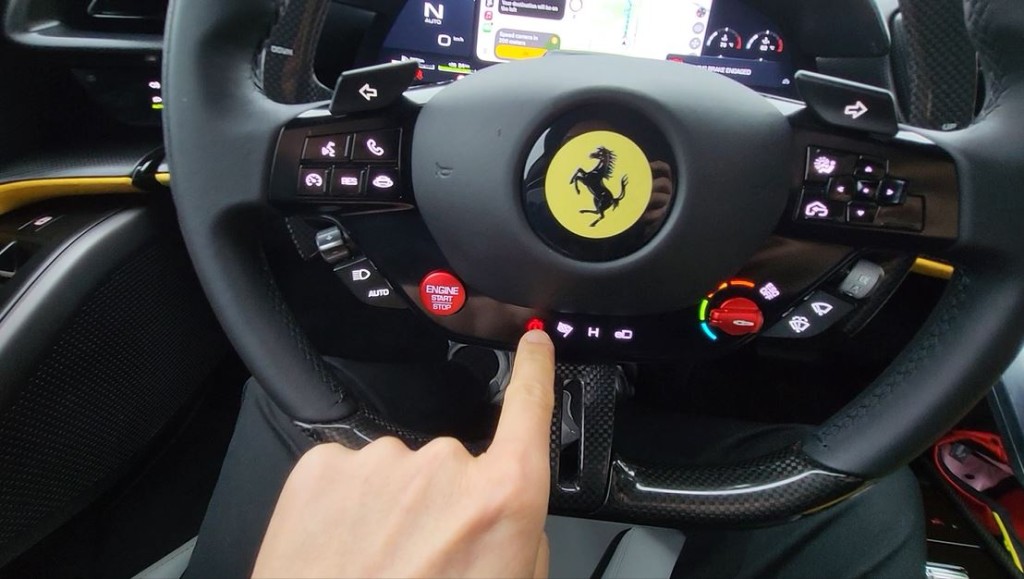 車廂融入F80設計元素,軚盤換上新一代實體掣鍵款式(只有e-Manettino選項為觸控),波檔屏懸浮於中控台上方,下方設有手機無線充電板,副駕席也有Infotainment觸屏。測試車配上手動碳纖維桶椅,短途快駕算很舒服,但個人覺得長途行車還是選另一款電控Daytona Seat全皮革桶座較理想。