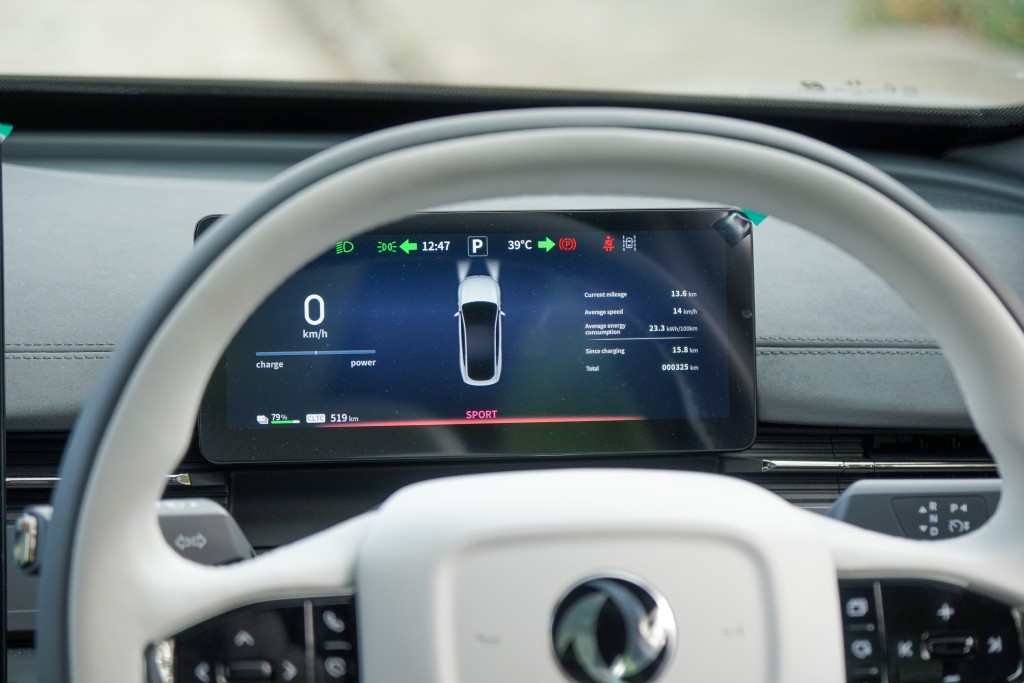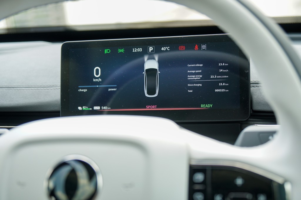 簡約優雅座艙舖排與時下大部份電動車相約,由T型中控台劃分駕駛與乘客區。內攏配色有深、淺兩種選擇,個人喜好深色,取其容易打理。柔軟雙色皮座椅乘坐舒適,前座兼具電動通風功能,駕駛席頭枕還內置喇叭。餘下配套豐富,齊備電尾門、多功能皮軚環、8.8吋數碼儀錶板、15.6吋觸控中屏、兩區恆溫冷氣、50W手機無線充電、64色氣氛燈、全景式天窗、前座馬鞍下方與後排出風口USB充電位、前座雙杯架與冷暖手枕儲物箱、19喇叭WANOS全景聲音響、540度泊車鏡頭及eπPILOT智能駕駛輔助系統等。