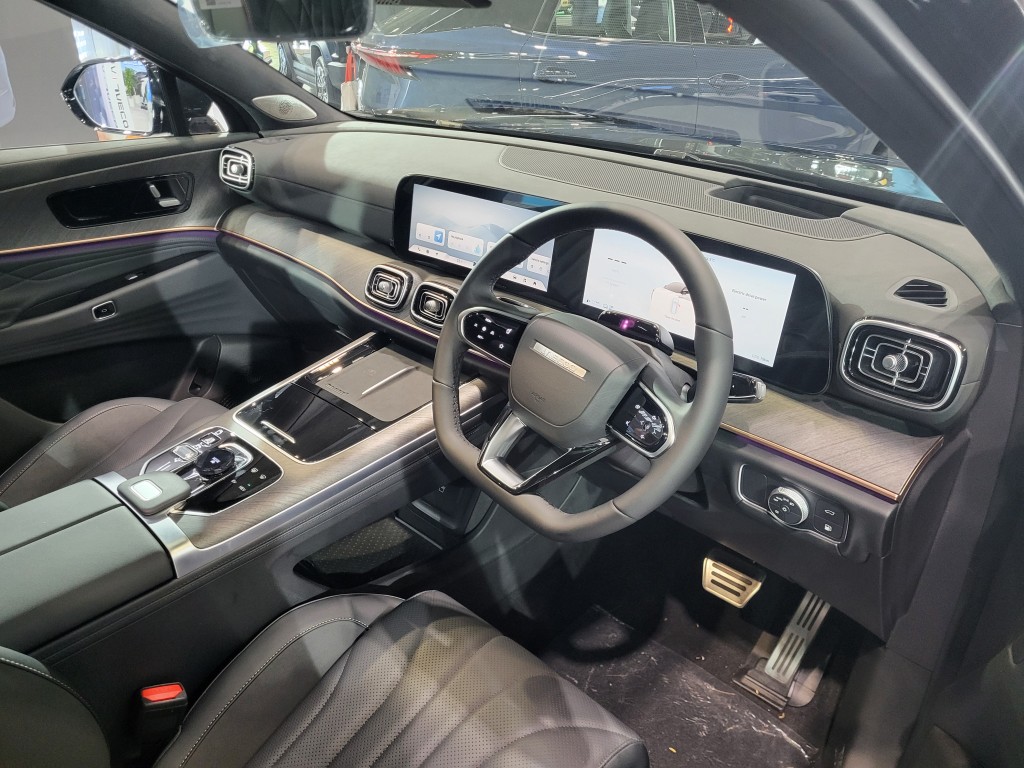 現場所見J8車身體積及市場位置跟越野路華Discovery Sport接近,是市場少數中型7座位混能豪華SUV,三排座椅為2+3+2格式。原車配有12.3吋數碼錶板及12.3吋中控觸屏,屏幕反應快捷,中排平地台空間不俗,尾排宜作臨時用途,整體豪華氣氛不俗。代理透露J8可能今年中抵港上市,售價未定。