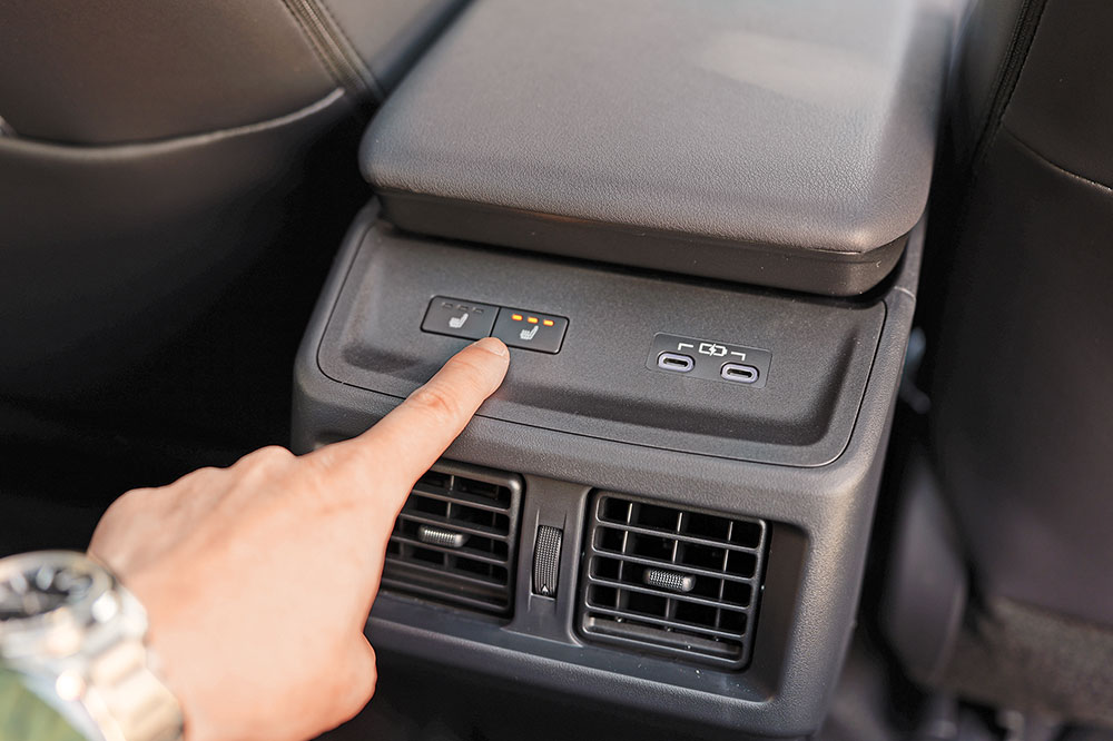 車廂包裝更趨豪華,首先是升級原廠真皮座椅,左右前座除了電控調校,還添置冷暖通風功能,後排發熱功能不變。中控台觸控屏幕由12吋擴大至14吋,支援Apple CarPlay,音響也升級至10喇叭Harman Kardon高級格式,同時新設雙層隔音玻璃,以及V2L對外放電功能,尾箱右邊設有200V/1,500W家用電源三腳插頭。